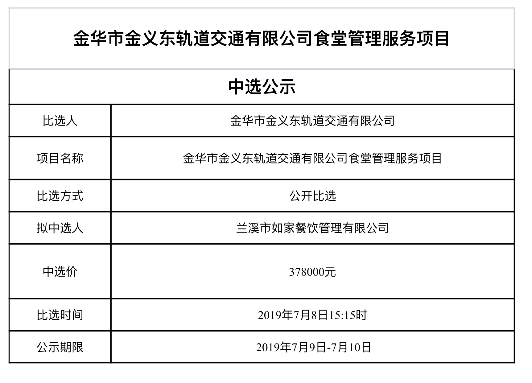 金華市金義東軌道交通有限公司運營2026-2027年度活動實施服務機構框架協(xié)議項目中標候選人公示