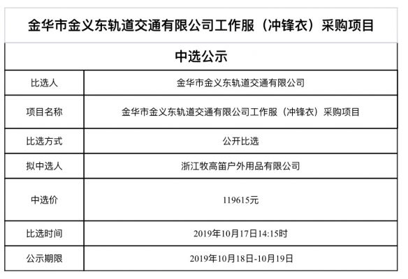 中選公示(沖鋒衣)